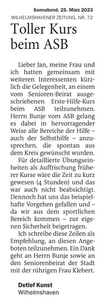 Aus Seniorenbeirat Wilhelmshaven